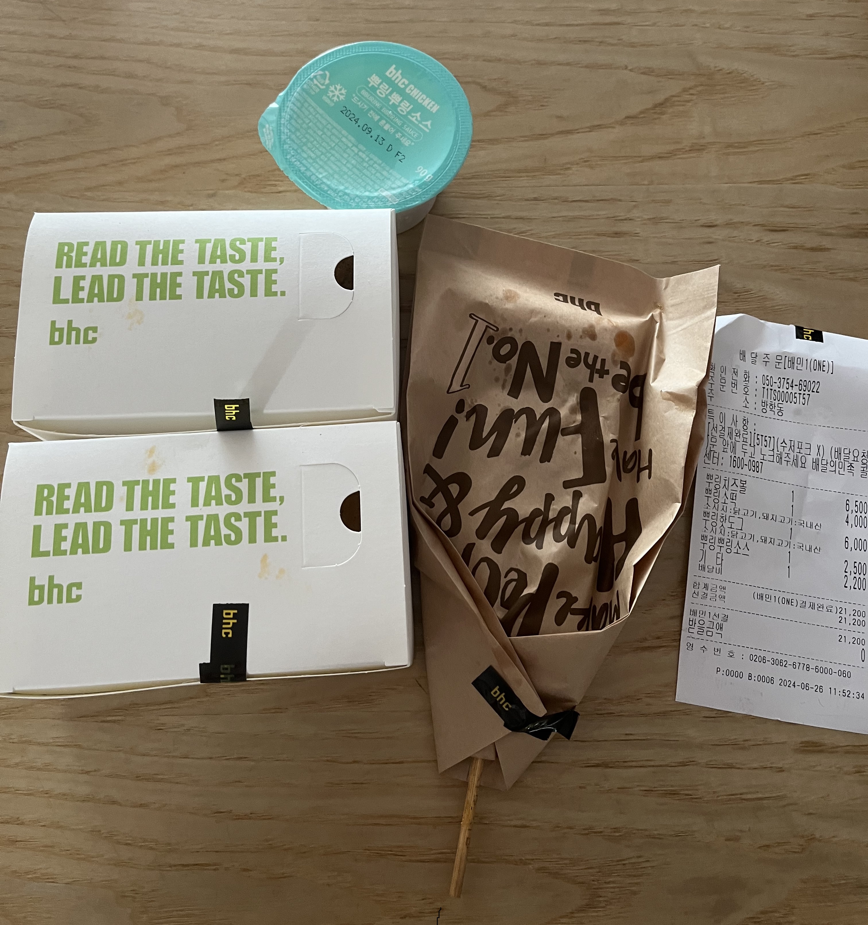 뿌링핫도그는 밀가루 부분이 쫄깃해서 좋았습니다. 그리고 BHC는 소떡도 그렇고