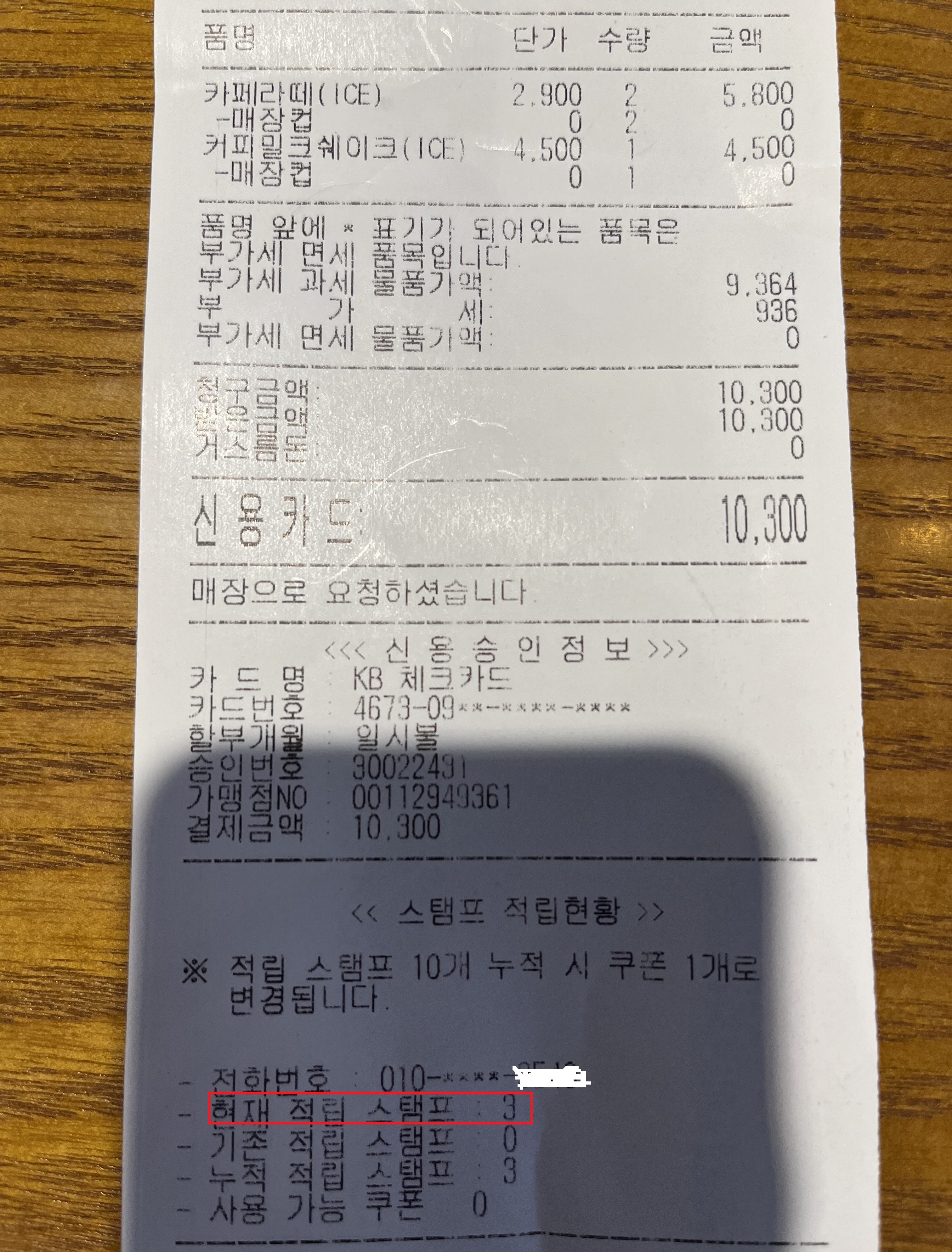 자주 가는 분들은 10잔 마시고 1,500원 할인받으면 이득이에요.